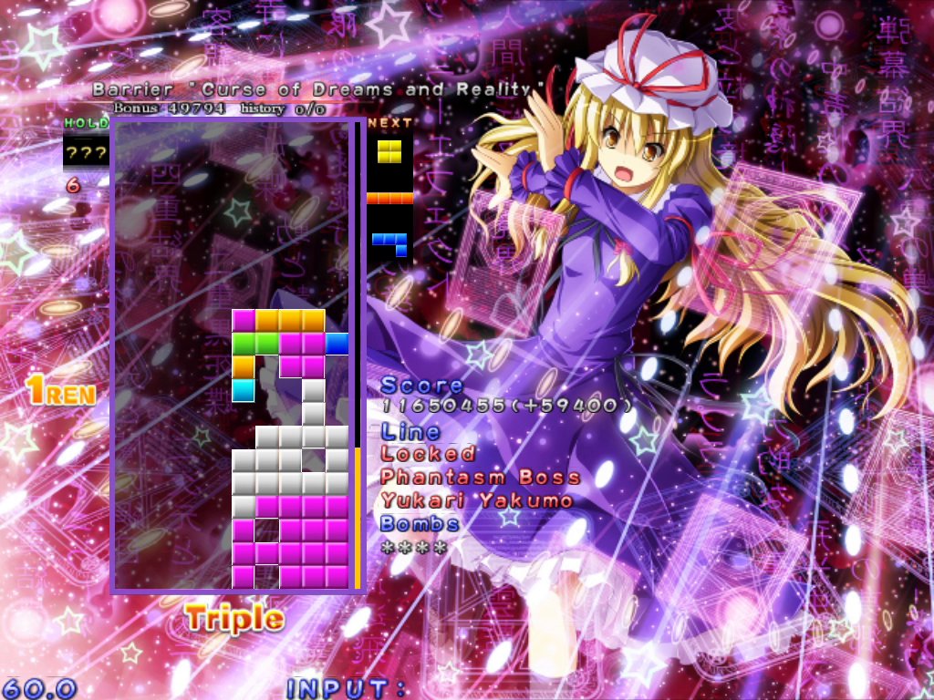 最初のスペカから難しいスペカがどんどん出ます。2つ目のスペカは通常のプレイではそこまで難しくはありませんが、特定の縛りプレイを行っている場合は特に難しいため、筆者の考案した対処法をよく読み、対処していただければと思います。(筆者は未だGM rule,No holdはクリアしていませんが、理論上行けるはずです。)